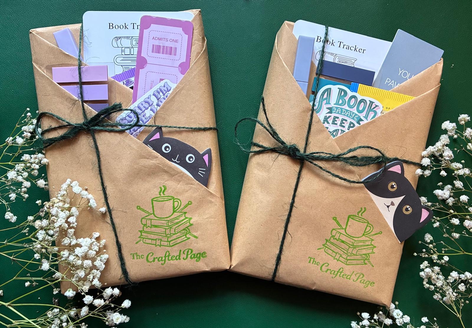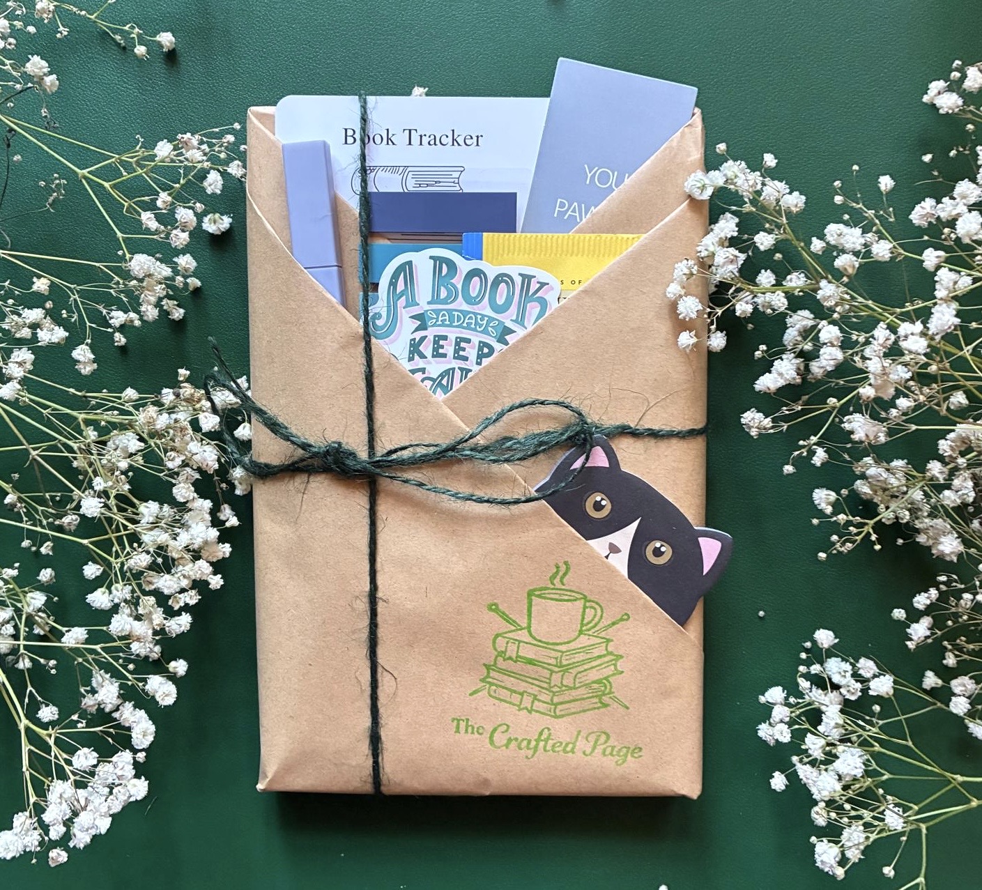 It’s a surprise! We take highly-rated books, wrap them in aesthetic brown paper, with some amazing add ons. No titles, no authors—just the story.