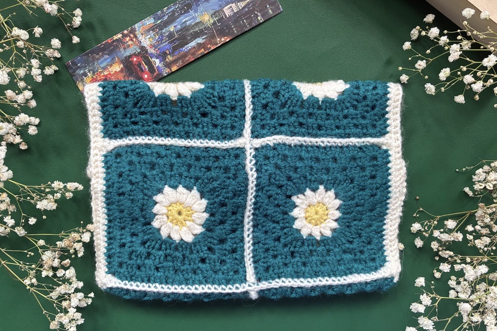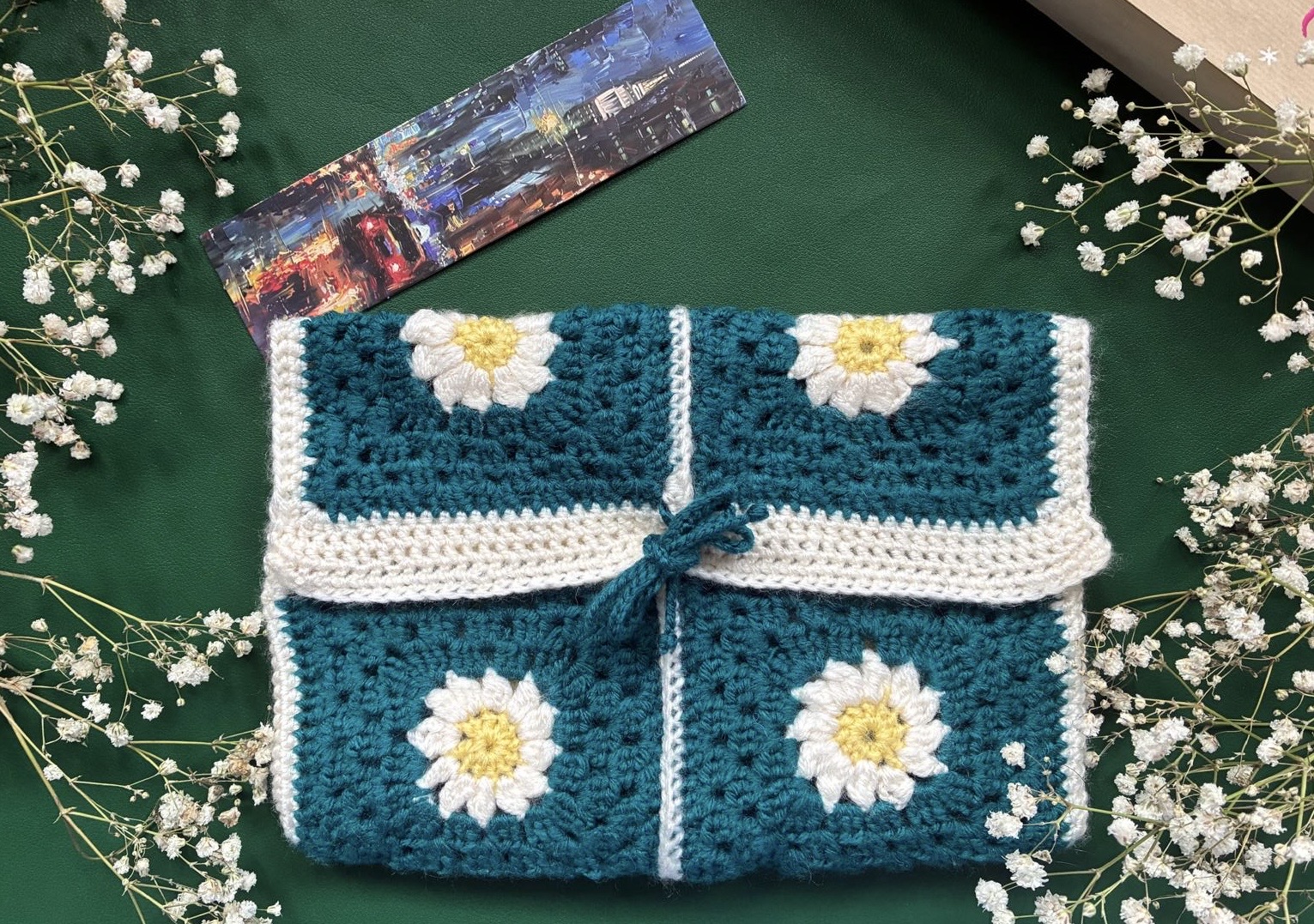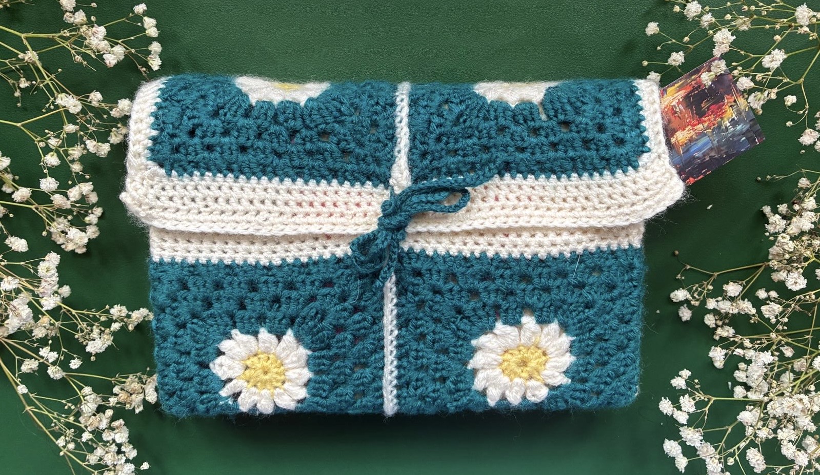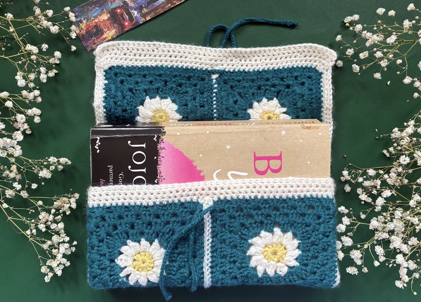 Protect your current read with this cosy crochet daisy book sleeve! Crafted with soft yet durable yarn, this pouch is designed to protect your paperback books from damaged corners and scratches inside your bag. Featuring a snug fit, it’s the perfect accessory for stylish reading on the go.